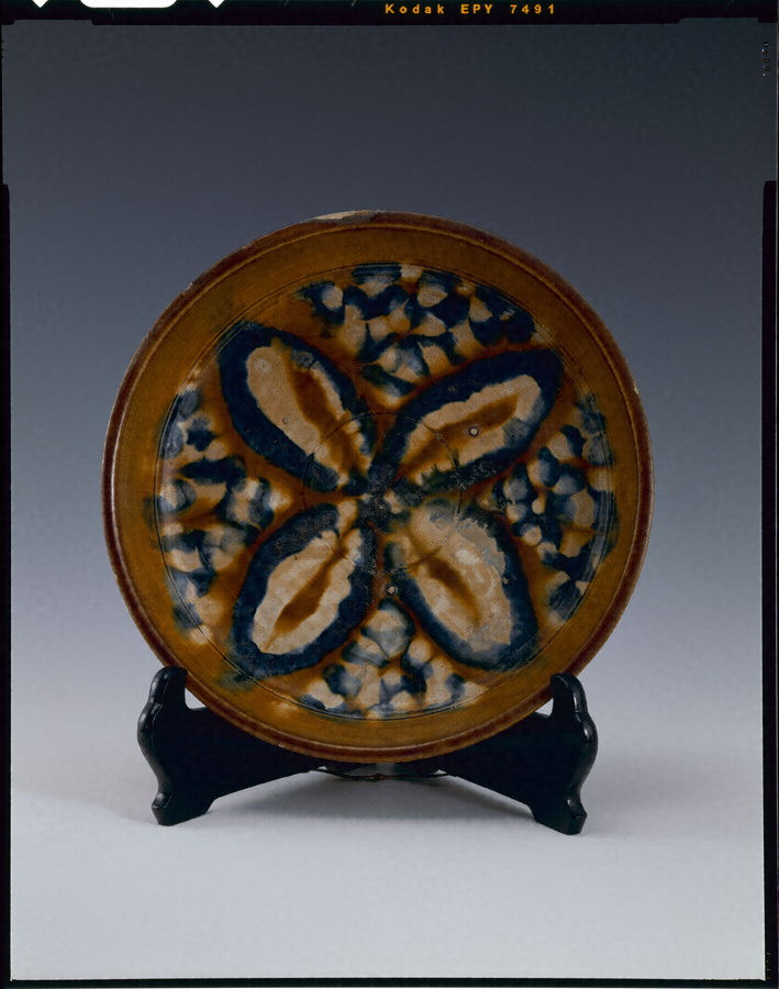 三彩四葉文盤