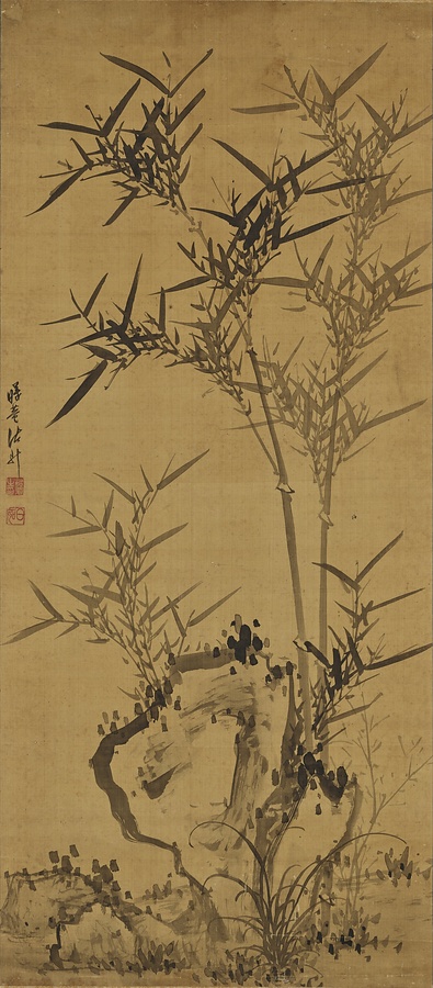 竹石図軸