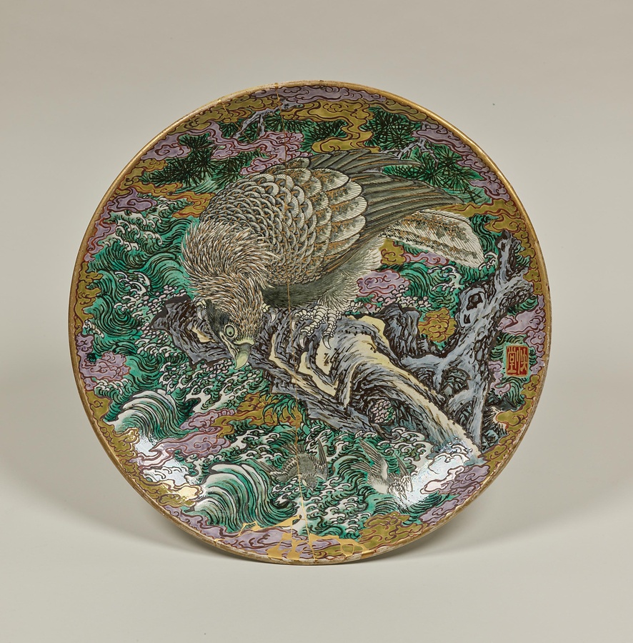 色絵金彩荒磯貝尽紅葉桜図大皿