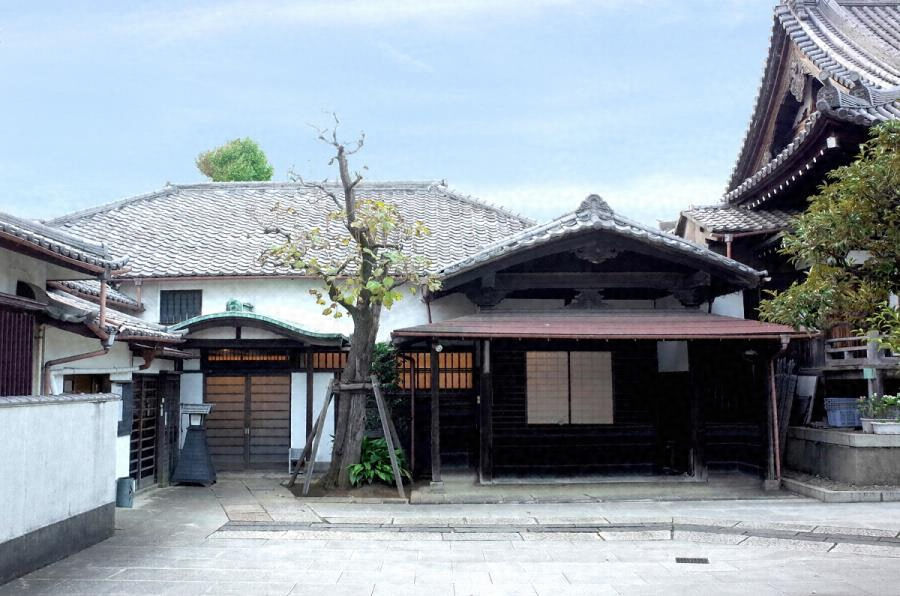 境内中央の本堂南に並ぶ寄棟造南北棟で、東に切妻屋根に霧除庇を廻した玄関を突出、内玄関は唐破風庇がつく。南側が庫裏で、北側の玄関奥に続き間の客殿を配す。主座敷15畳は、西に畳床、天袋付違い棚を設け、付書院を備える。端正な意匠の寺院殿舎である。