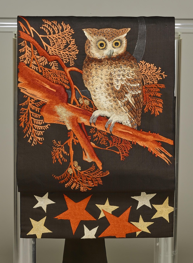 名古屋帯 黒繻子地みみずく模様