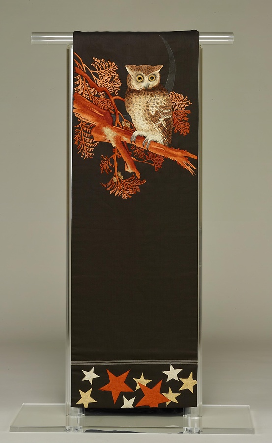 名古屋帯 黒繻子地みみずく模様をもっと見る