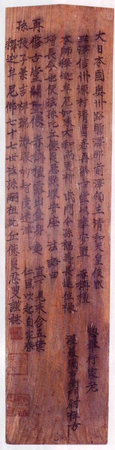 棟札:全長66.8cm、幅16.6cm、厚さ1.5cm
