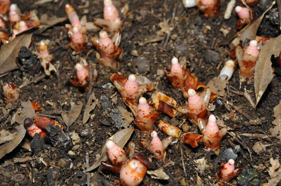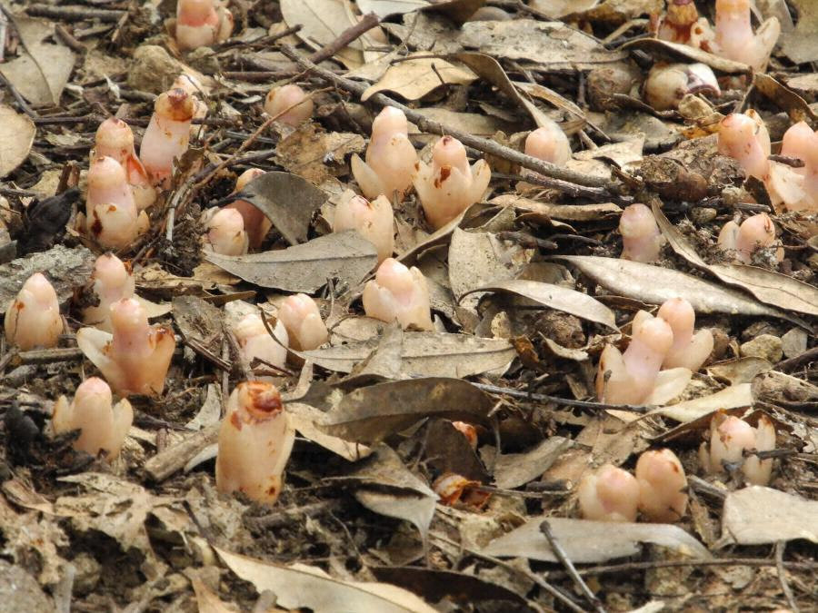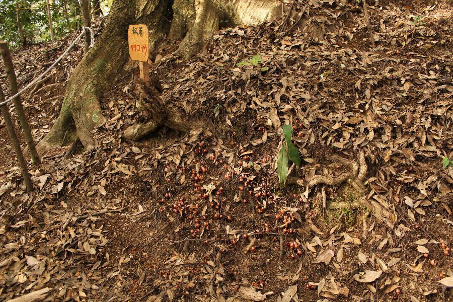 当市のヤッコソウ発生地は、海岸から約30kmに位置する高城町石山の市有林内である。標高約225mの南斜面に生えるシイの木の根元に発生している。