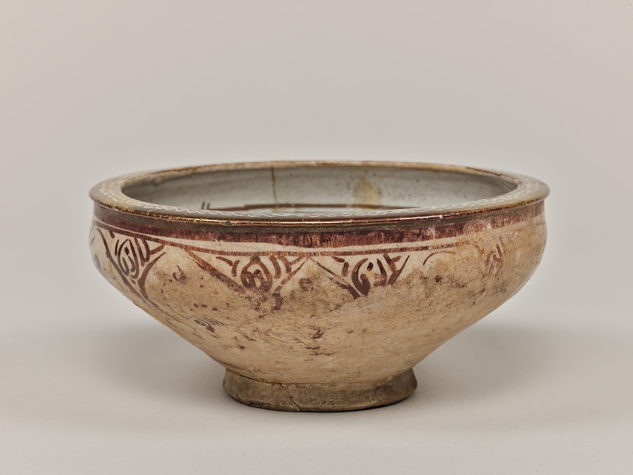 白釉上ラスター彩・釉中彩銘文入鉢