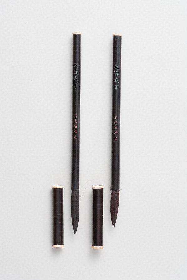 万元忠銘黒漆竹管対筆