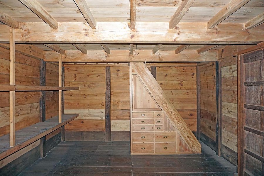 店舗兼主屋の南東に西面して建つ文庫蔵。土蔵造二階建切妻造桟瓦葺。外壁漆喰塗、腰海鼠壁仕上で、蔵前は柱や桁に丸太を用いる。内部は柱に横板を落し込み、柱や最下段の壁板にクリを用いる。小屋組はトラス。階段下に棚を造作するなど丁寧なつくりの土蔵。