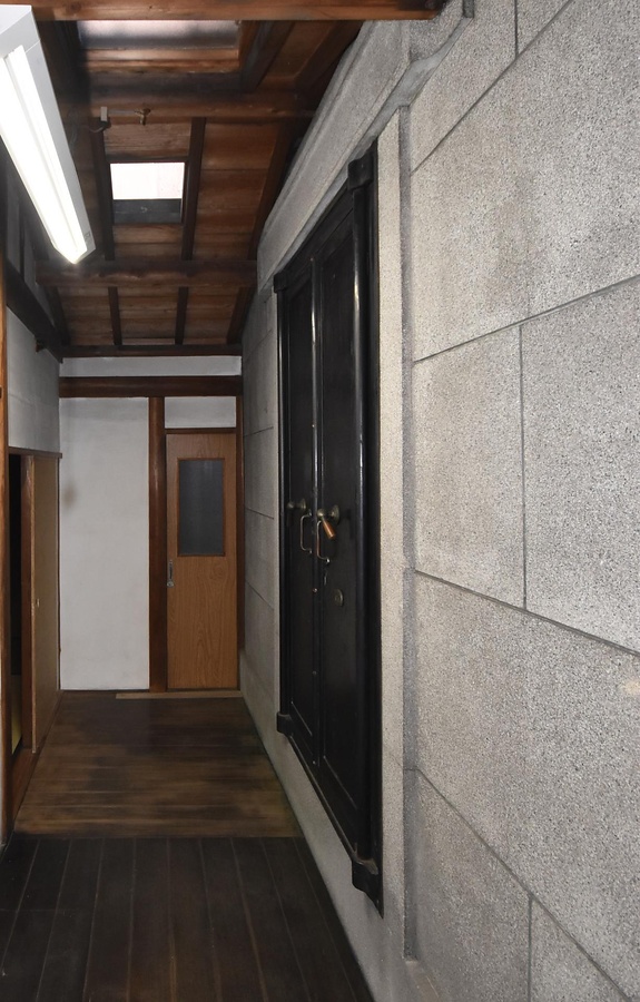主屋の北に位置する家財蔵。土蔵造2階建切妻造平入桟瓦葺で南に戸口を開け、離れとの間を蔵前とする。外壁モルタル洗出仕上で、目地を切り石造風とする。内部は各階一室の板敷で束立の和小屋を現す。戸口に重厚な鉄扉を構え小規模ながら丁寧なつくりの土蔵。