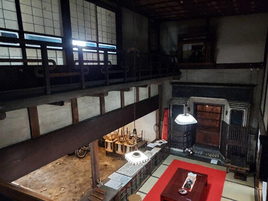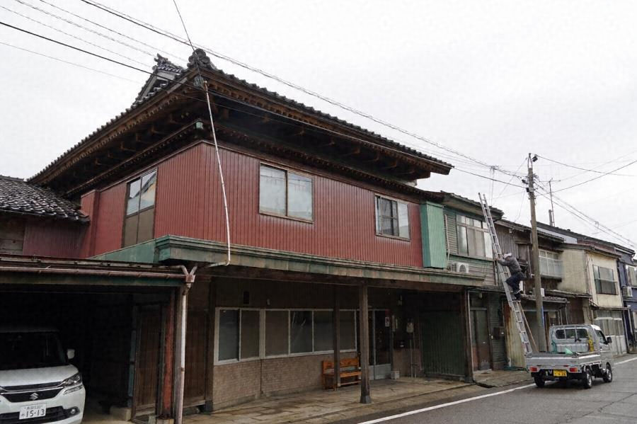 直江津の中町通に西面する呉服店の店舗兼住宅。土蔵が通りから後退するため、店舗正側面の入母屋造、軒の出桁造、霧除庇の豪壮な外観を見せる。正面雁木、内蔵が面する茶の間吹抜は雪国らしい構成。二階二〇畳座敷は客を招いて祇園祭を高欄越しに観覧した。