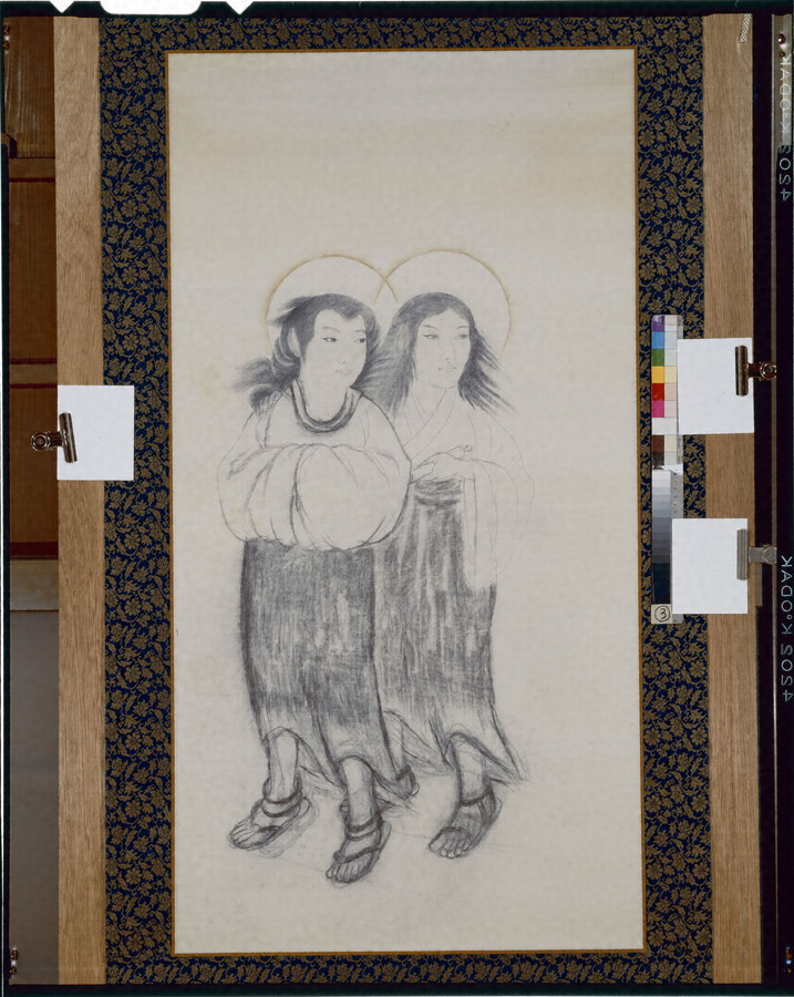 未完(大観は下絵を描かず直接本番で制作を行うため、何度も描き直している。大観の作品完成に至るまでの過程を知ることができる貴重な資料。)