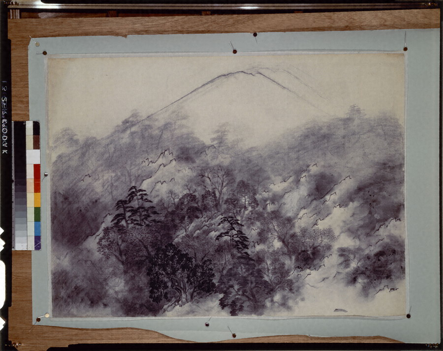第31回院展出品作の未完品。本作は下絵を描かず常に本番として描いているため未完品が多数ある。大観の制作過程を知ることができる貴重な作品。