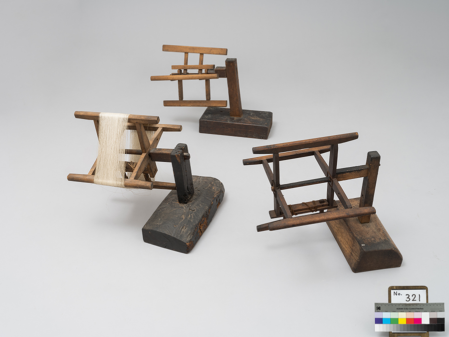 糊付けした糸を巻き取る枠。糸を糊の中にとおしながら、この枠に巻き取る。