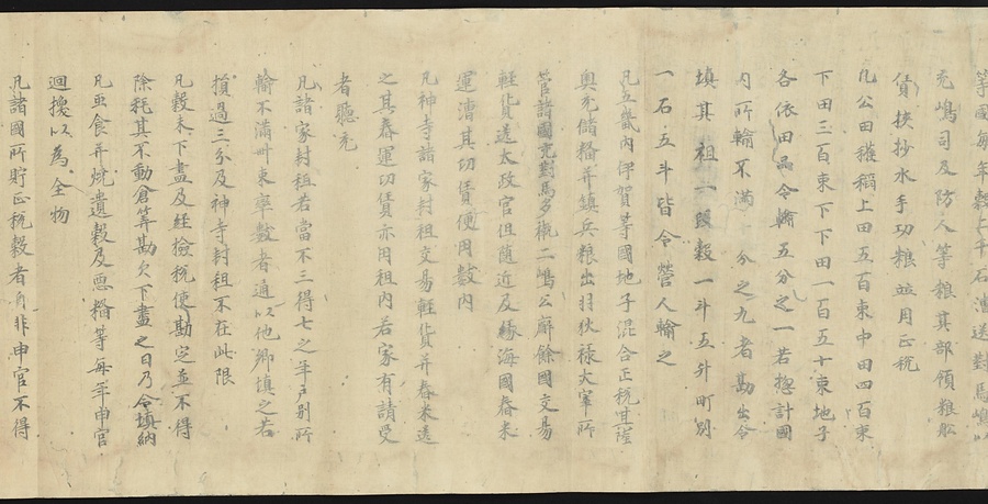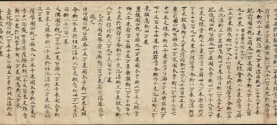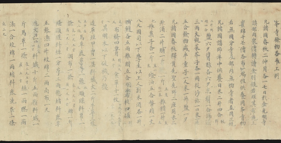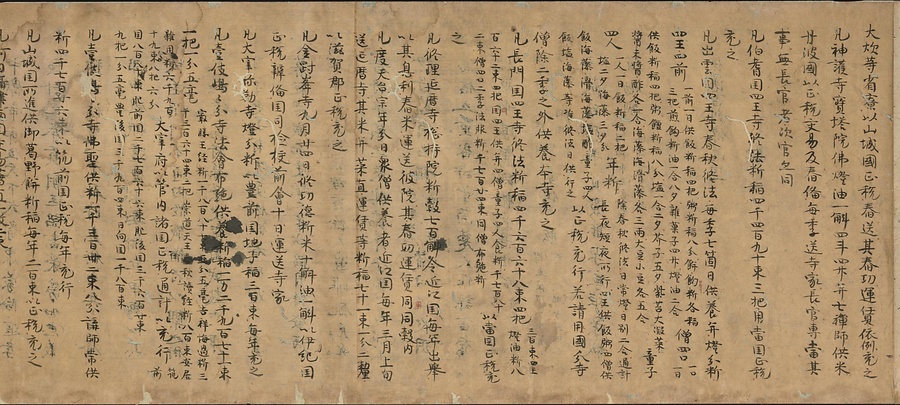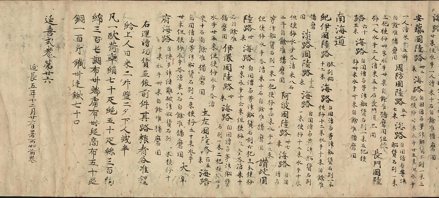今回ご紹介する延喜式は、オリジナルを書き写した文章で、写本と呼ばれるものです。この写本は現存する中で最も古く、奈良・平安時代を通じて権力を握っていた藤原氏の一族である九条家に伝わりました。延喜式は全50巻で構成されていますが、そのうちの27巻が残っており、1巻を除くすべてが平安時代の後期に書き写されたものです。