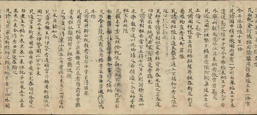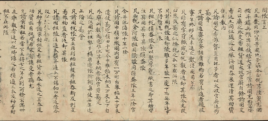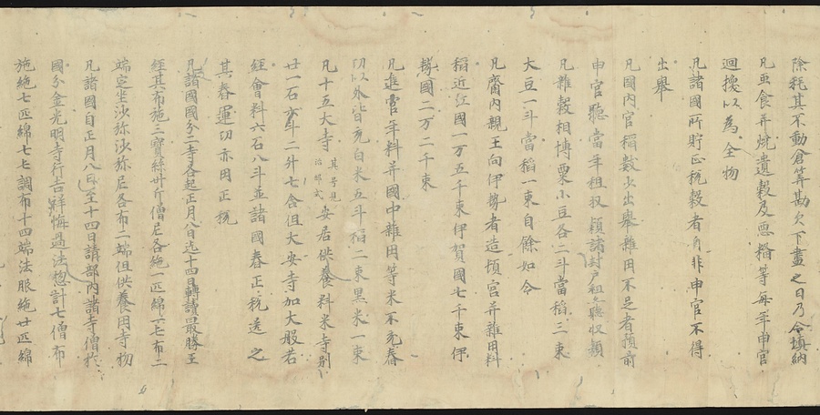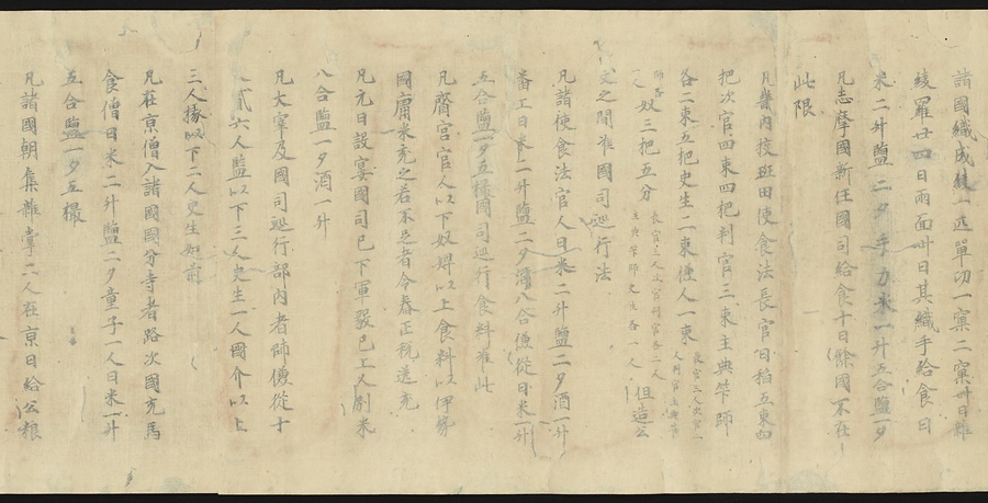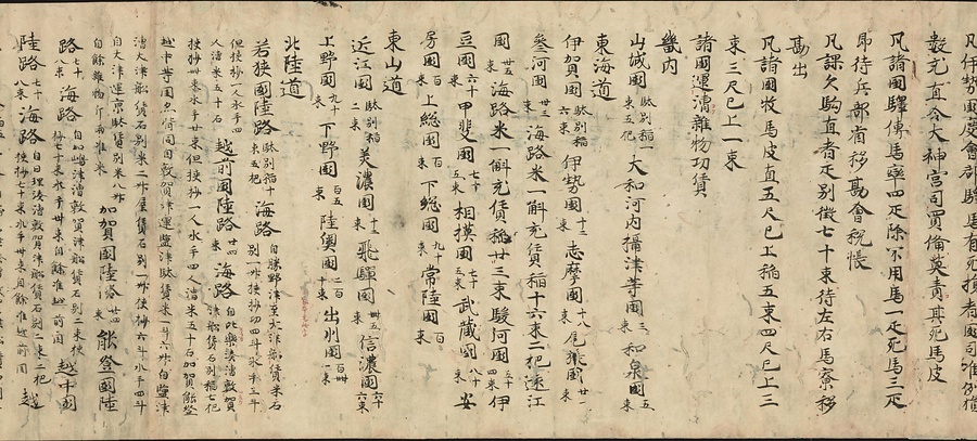日本では7世紀の後半に、中国の例を学んだ法律が取り入れられました。それを律令(りつりょう)といいます。律は犯罪を罰する刑法、令はそれ以外の法律を指す言葉です。しかし、中国にならった律令は、日本の実情に合わない部分も多く、それを補うために出された法律を格(きゃく)といいます。そして、この律・令・格を実際に運用するうえで必要になる細かな規則を式と呼びます。平安時代において、この式は社会の変化に合わせてたびたび改められ、補われました。その中でも、延喜5 (905) 年に、醍醐(だいご)天皇の命令によって編集を開始したのが延喜式です。これ以前の式は一部しか残っていませんが、延喜式はほぼ完全な形で伝えられている点で重要な史料です。