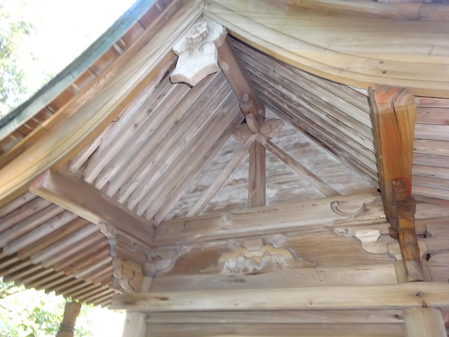 本殿東隣に南面して建つ方一間、正面入母屋造、背面切妻造、妻入銅板葺。正面に1間向拝を付し、三方に擬宝珠高欄付の縁を廻す。身舎組物は連三斗とし、軒は二軒繁垂木、中備は蟇股。板状の頭貫木鼻など古式なつくりの本殿で、境内の歴史的な景観を形成する。