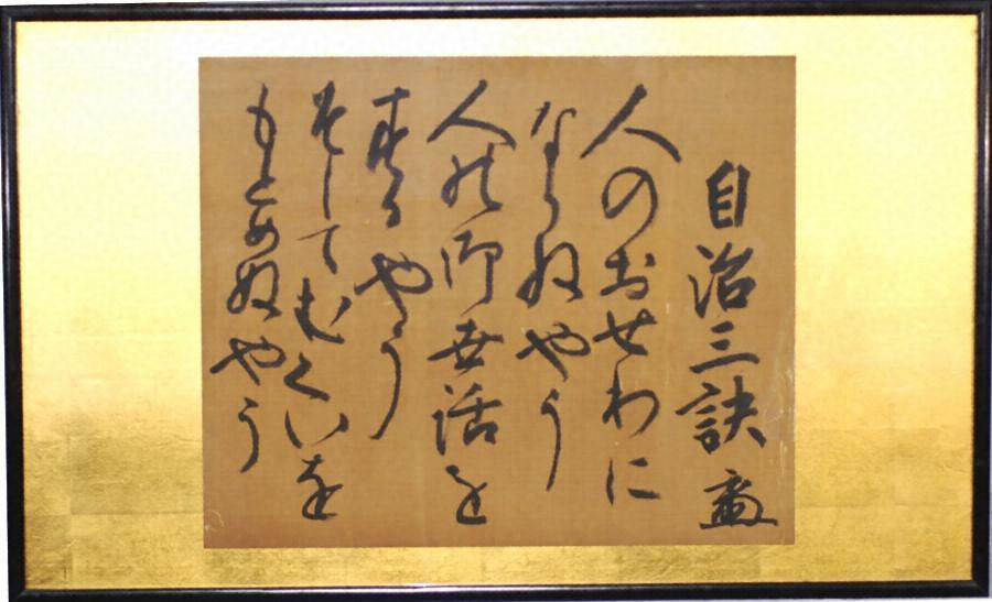 「自治三訣 (花押) 人のおせわに ならぬやう 人の御世話を するやう そしてむくいを もとめぬやう」と,子どもにも読めるよう平易な書体で書かれており,現在は額装されて龍ケ崎小学校に保管されている。