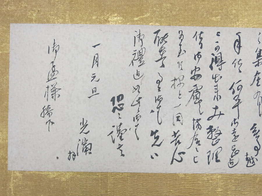 宛先の「御孟様」の「孟」は「兄弟の最年長」という意味があるので、大谷光演であれば、その兄・光周(浄如)と思われる(「大谷家譜」)。