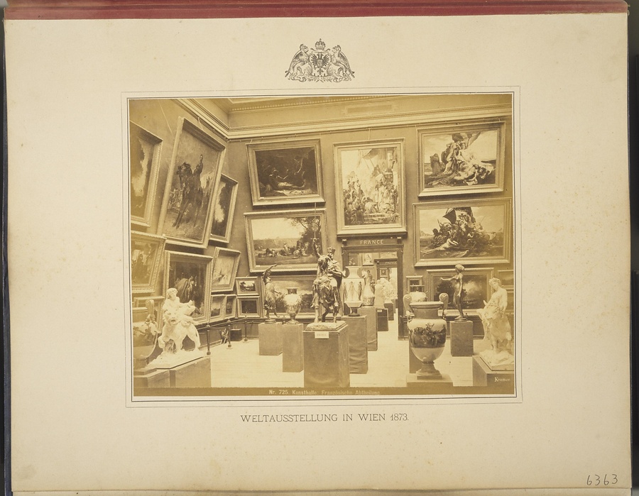 銘文:表紙:「WELT AUSSTELLUNG INWIEN 1873」「OSCAR KRAMER WIEN」(金字)、「第九區第一五號外国」(美術工芸部ラベル)、「2887」(赤枠ラベル)、「学2887」(ラベル)/見返し:第百七十一<七十三(鉛筆)>号(墨)、「博覽會事務局」(朱印)、「173」(鉛筆)