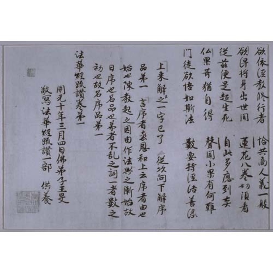 銘文:開元十年三月四日 仏弟子王旻敬書写奥書