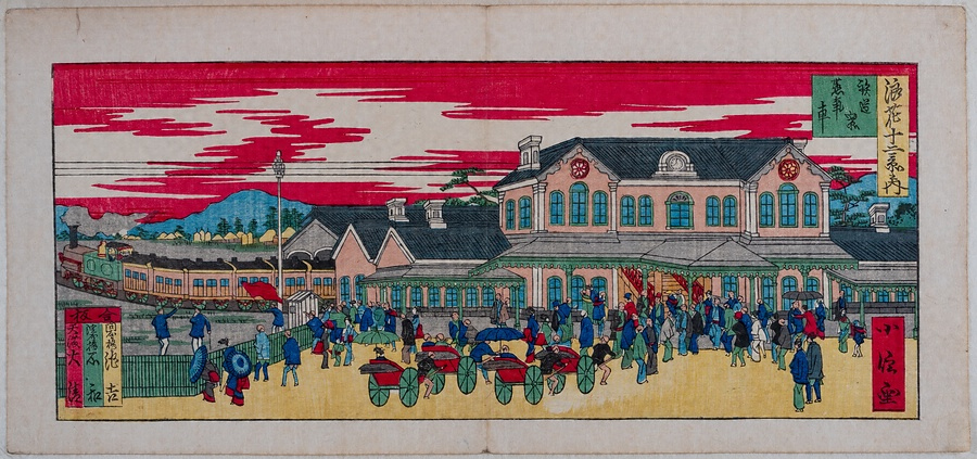 浪花十二景之内○鉄道寮蒸気車