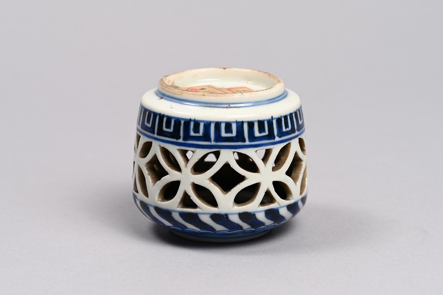 染付透彫盃台