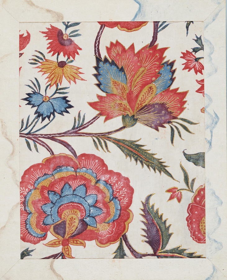 茜地花格子文様更紗
