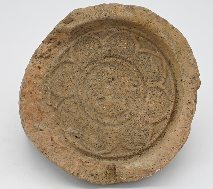 瓦当径15.6cm、中房径4.5cm、文様区径11.5cm、瓦当厚2.2cm、周縁幅1.4cm