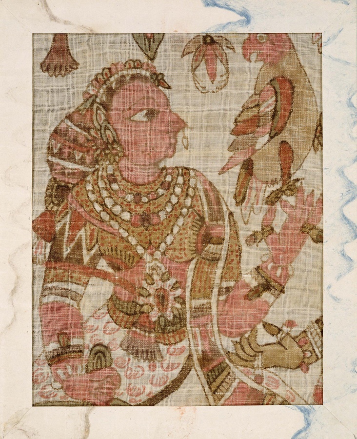 彦根更紗 白地鳥を持つ女性図更紗(人形手)