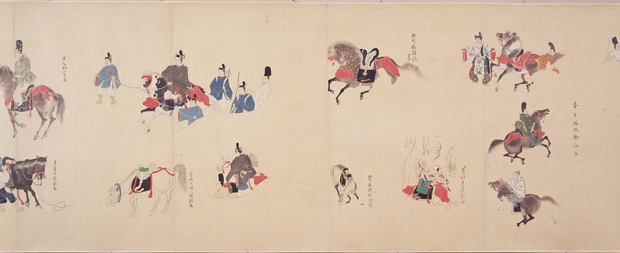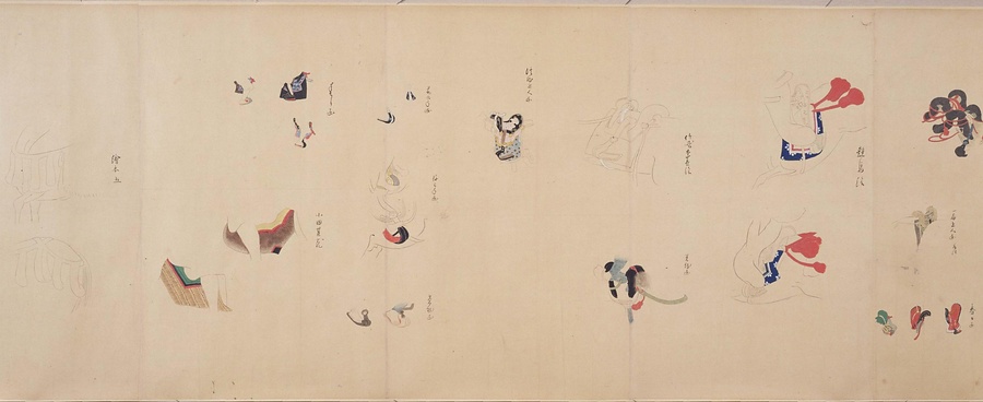 紙本著色、巻子