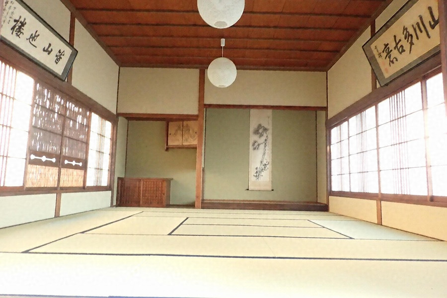 甲府旧城下の魚町通りに位置するかつての料亭の座敷。敷地中央に位置する寄棟造桟瓦葺の東西棟で、外壁は塗込めて黒漆喰仕上、基礎廻りをモルタル塗仕上。戸口を西に設け、内部は一室の畳敷で東面に床を構え、黒檀の框など吟味した材を用いた蔵座敷。