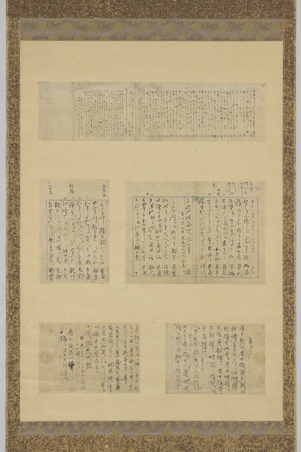 上段は一茶の日記断片。一茶と淅江3人でまいた歌仙などが書かれている。「文化句帖」と「七番日記」の間にあたる文化5~6年頃の日記は拡散してしまい、断片として各地に伝わっている。中段は一茶が過去の俳人の句を抜き書きしたもの。使っている用箋は一茶のオリジナルで、中央下部に「一茶」の字が刷られている。下段は古典の抜き書きで、裏面にも一茶の書いた字が見える。