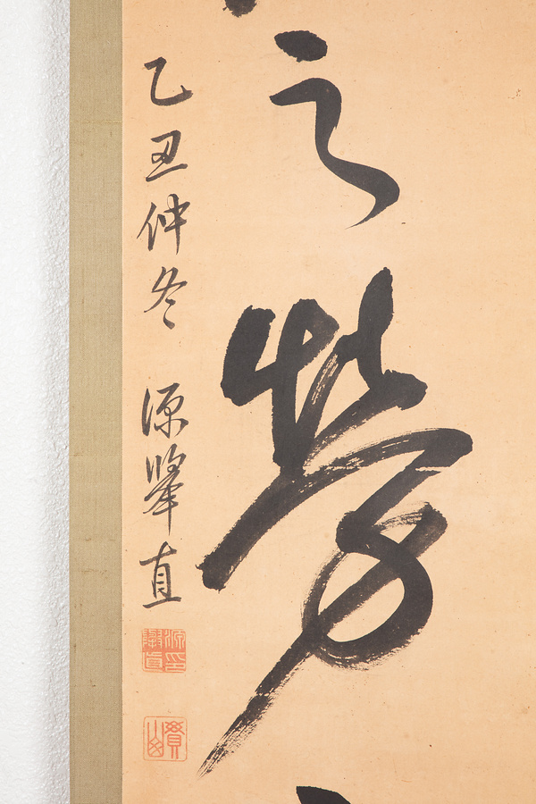 「先之労之」は論語子路篇にある言葉で、子路が孔子に政治をなすべき道を問うたときの答え。何事も人々に先んじて行い、人々をいたわることという意味である。「乙丑仲冬 源挙直」とあり、乙丑(慶応元年 ※4月7日改元)に土浦藩主であった土屋挙直がしたためたもの。