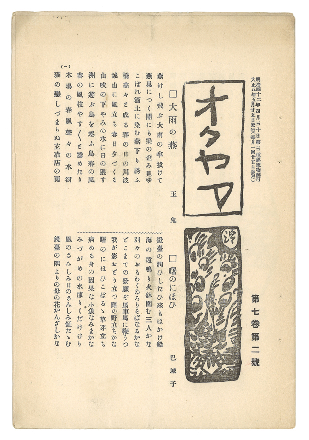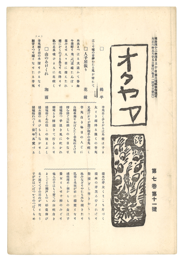 第7巻第9号の「会報と消息」欄には、高岡の廣島花渓樓が竹の門について言及しつつ自身の近況を記している。