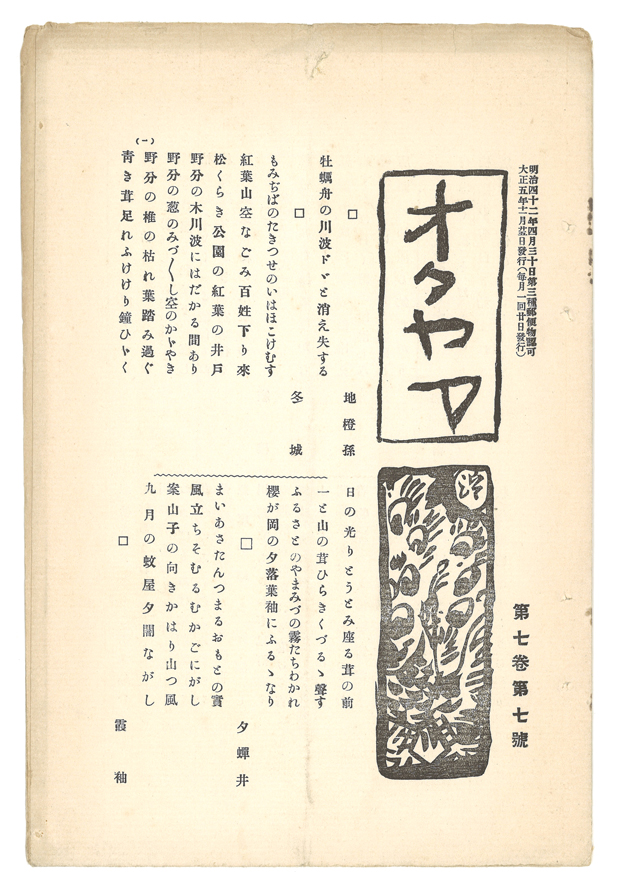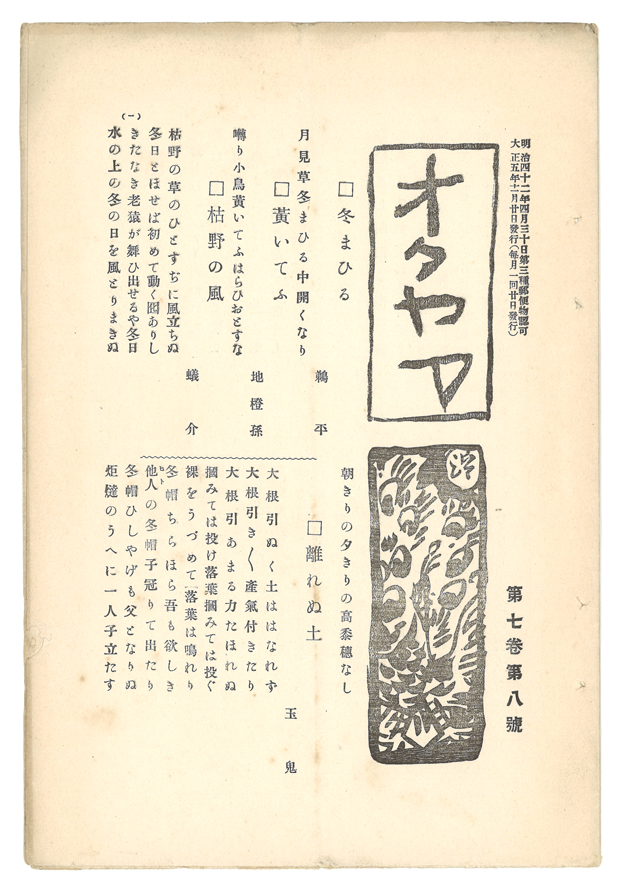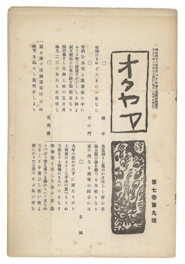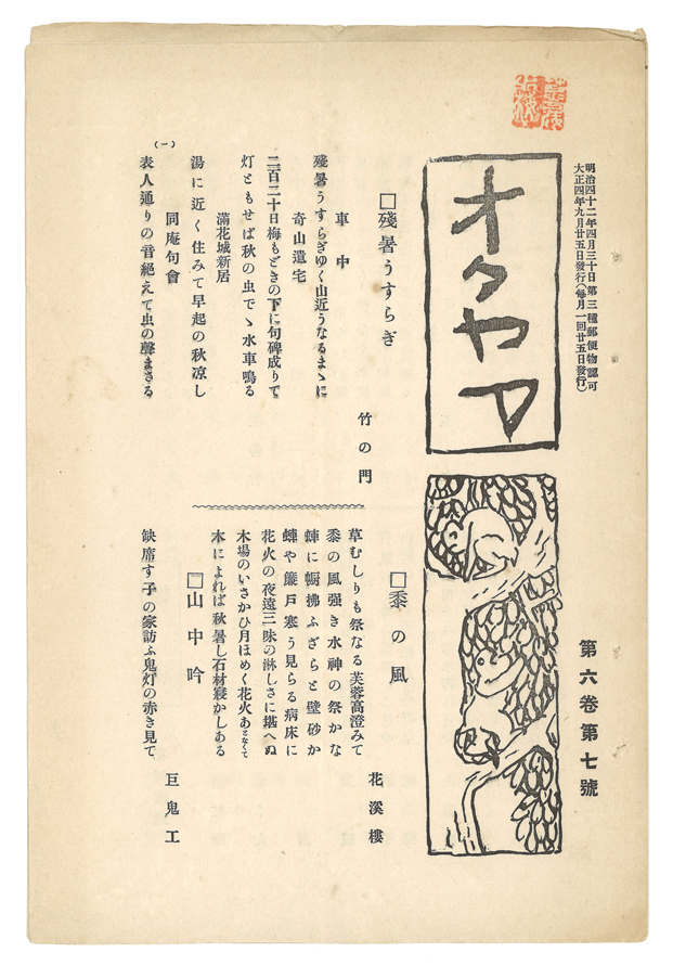17冊のうち、筏井竹の門の句の掲載は3冊(第6巻第7号に5句、第7巻第1号に5句、第7巻第9号に5句)。