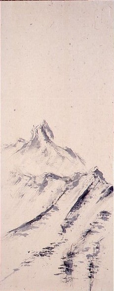水墨雪嶺風景図