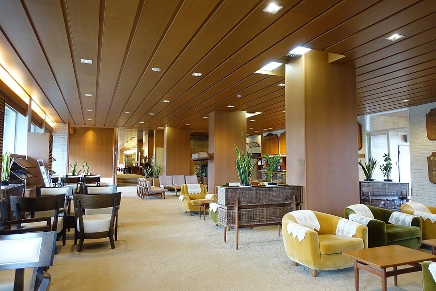 逆瀬川沿いのゴルフ場のクラブハウス。設計は村野藤吾を中心とした建設委員会。斜面地に建つ鉄筋コンクリート造一部鉄骨造、地上3階地下1階建。外周に軒を張出し、中央に塔屋を配す。水平性を強調しつつ、塔屋と組合わせた外観が、周囲の環境と調和を生む。