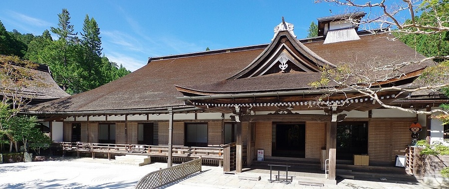 本堂の北東に南面して建つ客殿及び庫裏。入母屋造平入檜皮葺で、正面の東寄りに入母屋造の玄関を突出する。内部は東の庫裏、西の客殿からなり、客殿の正面に一間幅の広縁及び濡縁を付して、高欄を廻らす。高野山内における江戸時代の典型的な客殿建築の一つ。