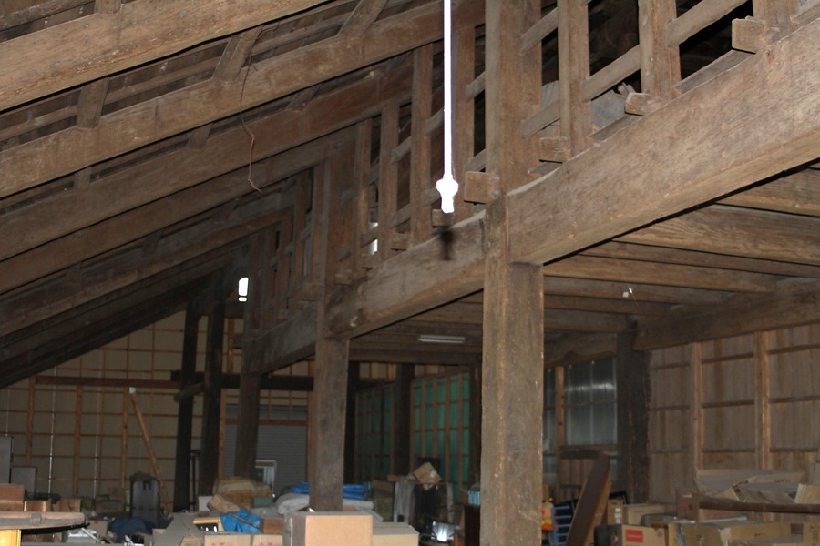 市街地西部に位置する酒造業の酒蔵兼釜場。2階建切妻造桟瓦葺東西棟で、北・南面に下屋を付し、南面西寄りに切妻造南北棟の釜場を突出し、煉瓦造煙突を取込む。一階は土間で蒸米場など、二階は板敷で物置などとする。地域の酒造業の歴史を伝える貴重な土蔵。