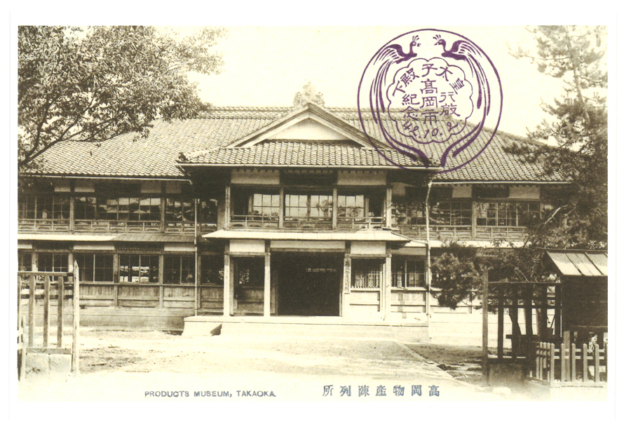 「皇太子殿下高岡市行啓記念/42.10.2」のスタンプが捺されたものが復刻されている。皇太子殿下(のちの大正天皇)が北陸行啓で高岡物産陳列所(高岡市桜馬場)を巡覧されたのは明治42年(1909)10月2日。