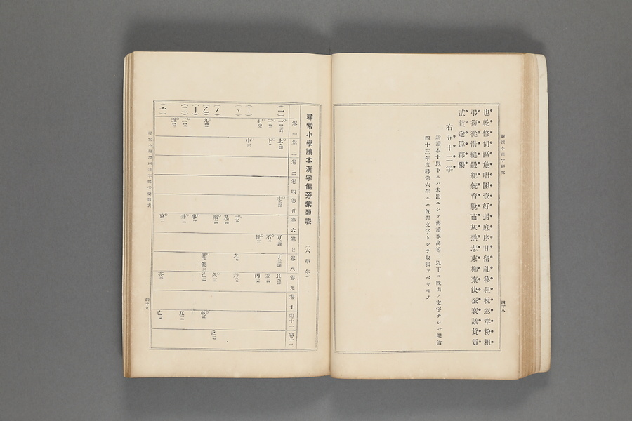 もとは筆者の勤務校である豊後立石金水学舎(現:大分県杵築市立立石小学校)における漢字指導参考書。尋常小学校で使われた『尋常小学読本(第二期)』(「ハタ・タコ」読本)に出現する漢字について、出現学年や出現位置などを分類して示している。また俗字で登場するものや字体の統一されていないもの、点画が誤っているものなどをも収集し一覧にしている。国語学者芳賀矢一の推薦により、全国の教育者の参考書として公刊されるに至ったことが、序文に記されている。