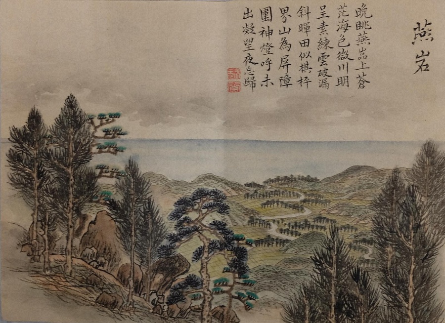 大西圭斎(おおにしけいさい)が描いた相馬地方(福島県)から松島地方(宮城県)の風景画に武元登々庵が作った漢詩を附してまとめた画帖。圭斎は、登々庵が東海の浜から小名浜へ向かう途中で合流している。