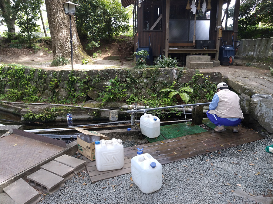 阿蘇外輪山西側山麓に湧く湧水です。西原村の多くの方に利用されています。水の電気伝導度とpH2022年4月18日測定 C: 9.83 mS/m pH: 7.53