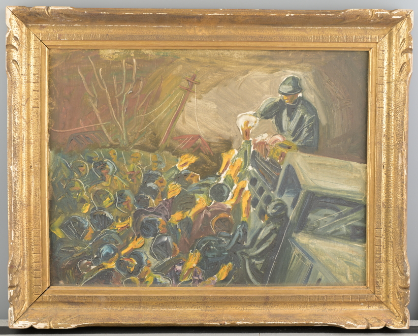 京都市美術工芸学校生徒が丹後震災の様子を描いた油彩画。