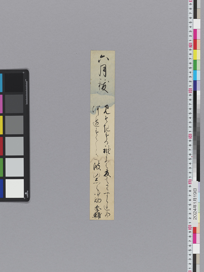 また、本品の短冊全点が8月24日の月次和歌御会のものではない。判明するもののうち、橋本公綱・日野西国豊・四辻季輔の短冊は、他の御会のものである。橋本公綱の短冊は生前(延宝2年以前)の御会の時のものである。また、日野西国豊の和歌と四辻季輔の和歌は延宝2年10月24日の月次御会のものである。その他の短冊については、いつの御会のものであるか不明である。