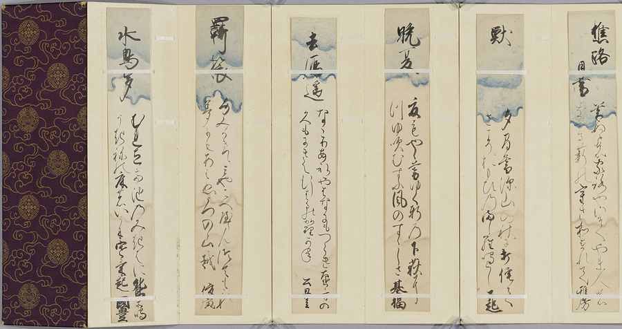 短冊は詠者の自筆であり、また1枚だけでも鑑賞することができるために珍重され、江戸時代に収集が行われた。短冊を綴じていた水引が切られたことで短冊が離散し、失われたもの、あるいは残されたとしても、1枚しか残らないために詠作背景のわからないものが多い。本品は同一の御会ではないものの、霊元天皇と霊元期の公卿らの短冊を取り合わせ、1帖に仕立てたものである。
