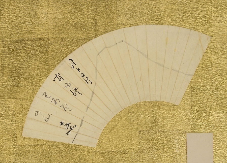 屏風ー5 扇面「月と日の間に澄り不尽の山 士朗」