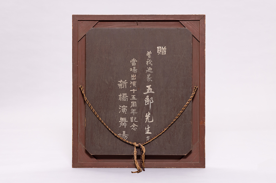 油絵具で描かれ、黒を背景とした本格的な西洋風のポートレイト。大正14年(1925)に開場して以来昭和14年(1939)までの15年間、新橋演舞場で毎年公演を行ったことを記念して、五郎は『十五年の足跡』という本を刊行するとともに、この肖像画を劇場に飾らせた。喜劇俳優というより政治家や実業家のように見えるが、功成り名を遂げた五郎は、自分もまたそうした立派な人物の一人であると、見る者に思わせたかったのかもしれない。