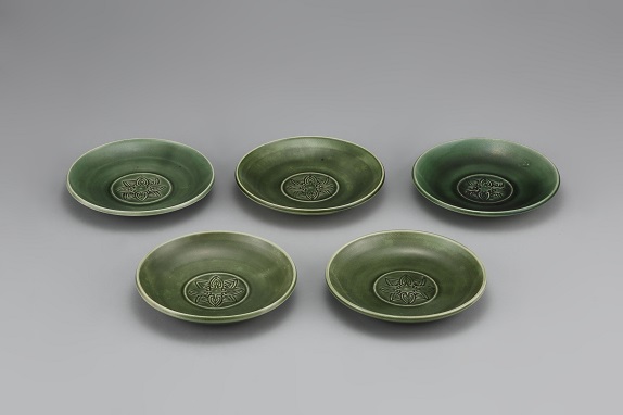 緑釉印花文皿