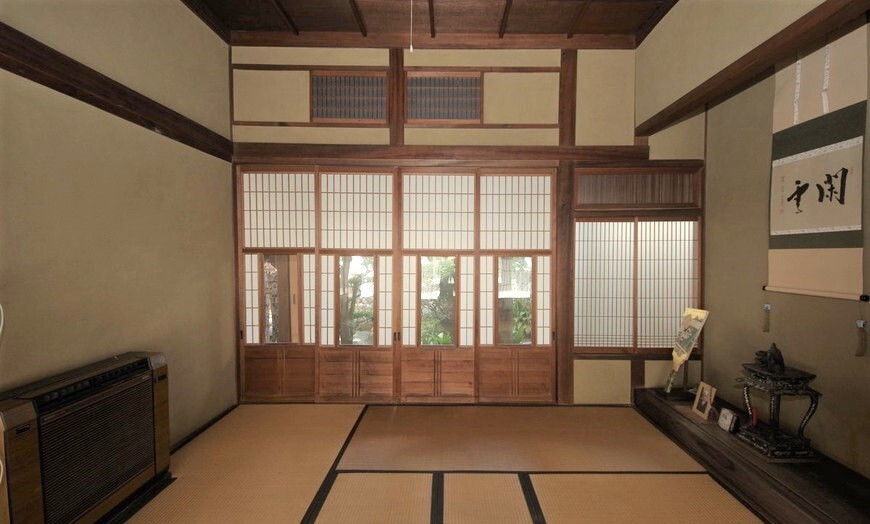 主屋の東側に渡り廊下で接続する隠居屋。平屋建切妻造桟瓦葺の東西棟で、南面に土庇を付し、外壁は漆喰塗仕上とする。内部は廊下の南に部屋を配し、東側は水回り、西側は座敷とし、奥行の浅い大床と平書院を構える。造作丁寧で庭に面して開放的な外観の離れ。
