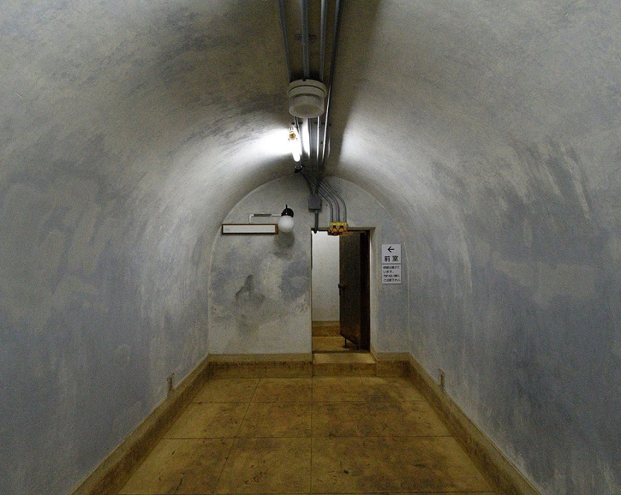 旧下総御料牧場内の皇太子殿下用と伝わる防空壕。マウンド状盛土下に鉄筋コンクリート造、壁厚70センチメートルの主室を配し、東西に通路を付したH字形平面。主室前室と通路境を分厚い鉄扉で遮蔽。当時の技術を駆使し戦時下の緊張を伝える堅固な防空施設。
